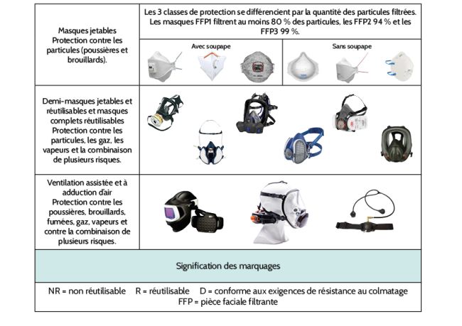 Différents modèles de protections repsiratoires