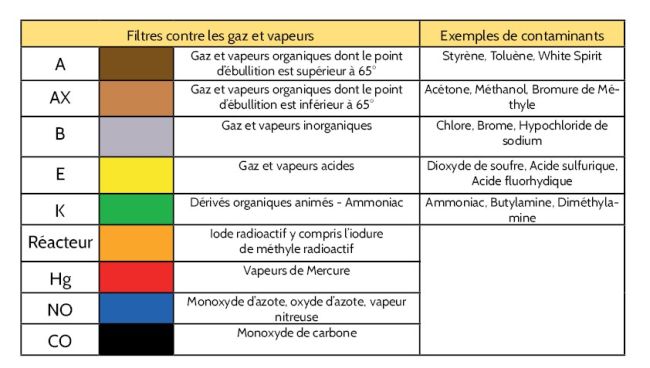Filtres contre gaz et vapeurs