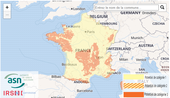 - la zone géographique où se situe les locaux de l’entreprise (voir carte IRSN ci-dessous)